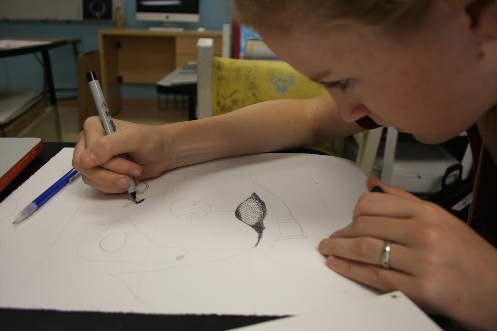 Line drawings in progress, H.S. Art